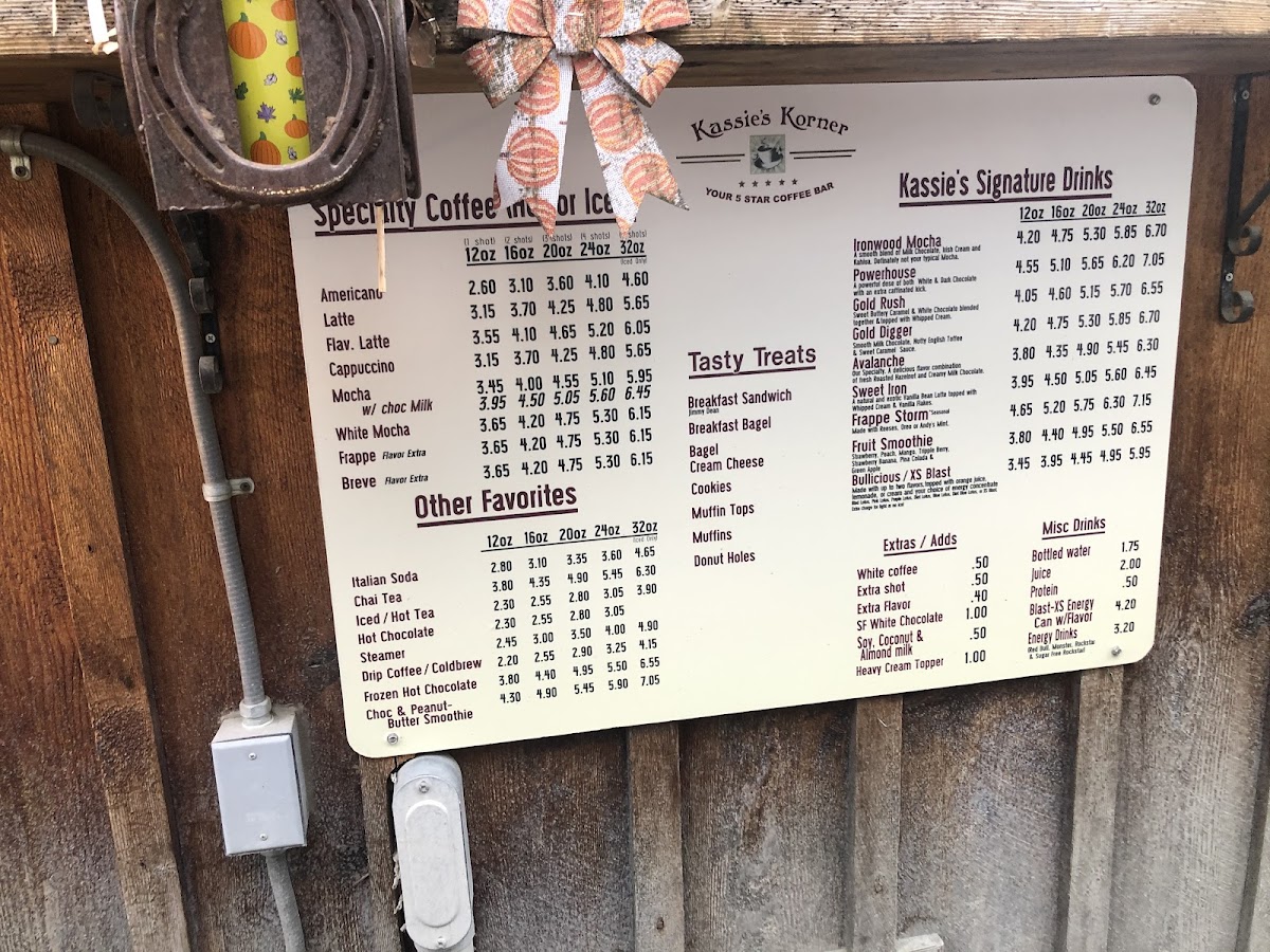 Kassie's Korner offers a straightforward menu filled with comforting drinks and casual bites, perfect for starting the day or grabbing a quick pick-me-up. The menu features a mix of classic coffee staples alongside unique signature creations like the Powerhouse Mocha and refreshing Italian Sodas, catering to those who appreciate both familiar flavors and something a little different.